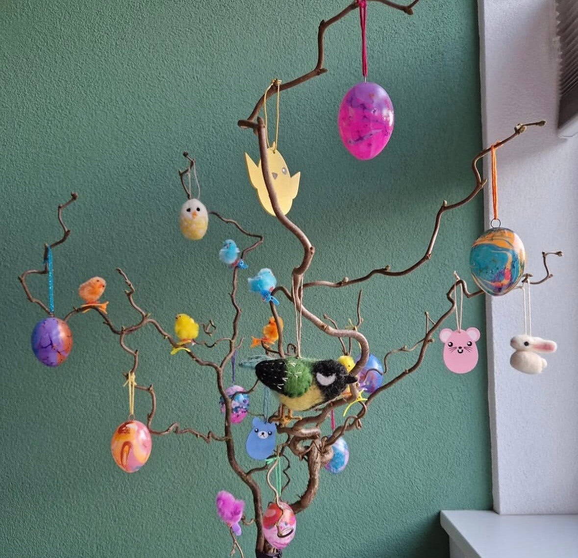 De paaseieren kun je marblen of versieren met acrylstiften en glitters.